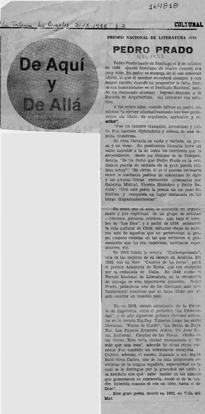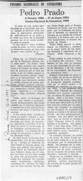 Pedro Prado, Premio Nacional de Literatura [artículo] Raúl Silva Castro.