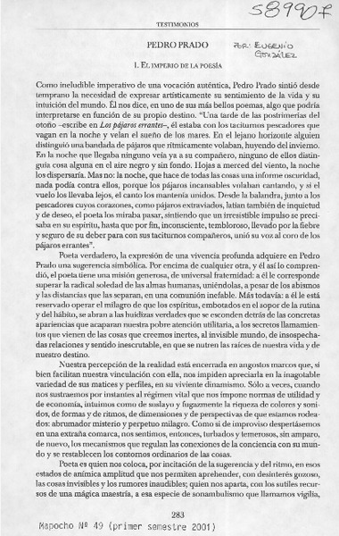 Poesía y anécdota de Pedro Prado (1886-1952) [artículo] Juan Antonio Massone.