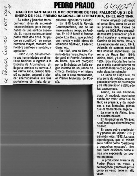 Pedro Prado [artículo] Hernán de la Carrera Cruz.