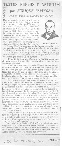 Pedro Prado, el viajero que se fue [artículo] Enrique Espinoza.