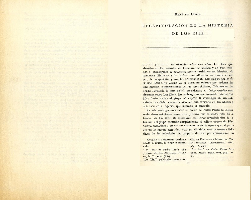 Recapitulación de la historia de los diez [artículo] René de Costa.
