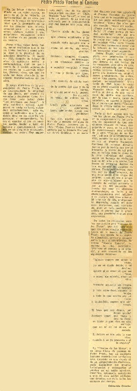 Pedro Prado vuelve al camino [artículo] Edmundo Concha.