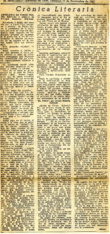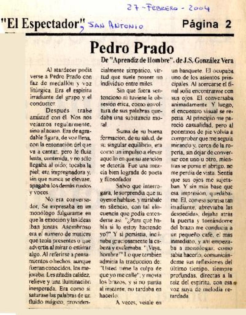 Pedro Prado en mi recuerdo [artículo] Juan Loveluck.