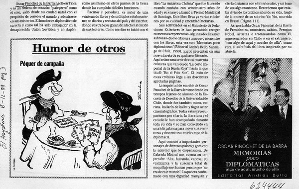 Autores chilenos - Memorias poco diplomáticas - Pinochet de la Barra, Oscar