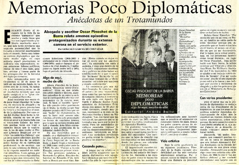 Memorias poco diplomáticas [artículo] Oscar Pinochet de la Barra.