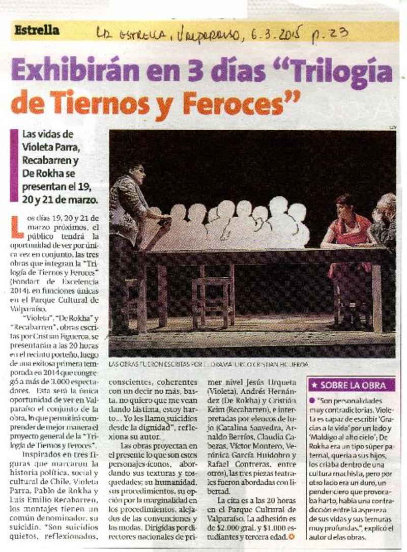 Exhibirán en 3 días "Trilogía de tiernos y feroces". [artículo]