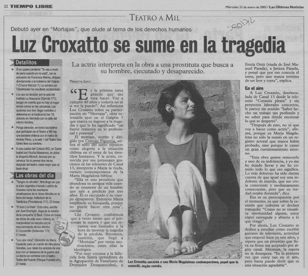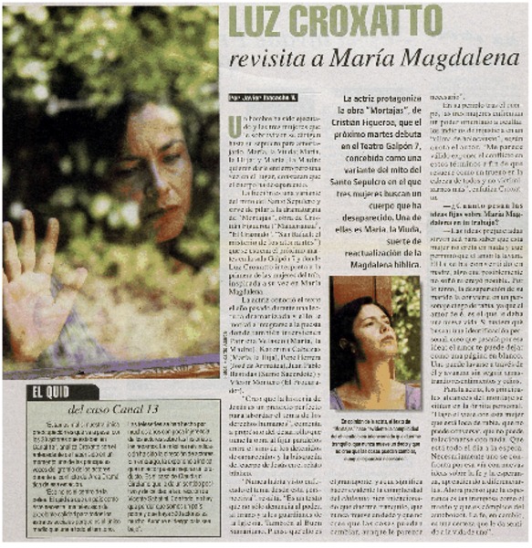 Luz Croxatto revisita a María Magdalena [entrevista] [artículo] Javier Ibacache.