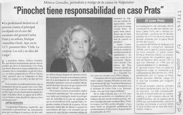 "Pinochet tiene responsabilidad en caso Prats" [artículo]