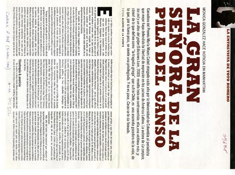 Mónica González, sin tregua [artículo] Pilar Segovia I.