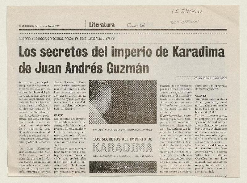 Los secretos del imperio de Karadima de Juan Andrés Guzmán [artículo] Marcelo Beltrand Opazo.