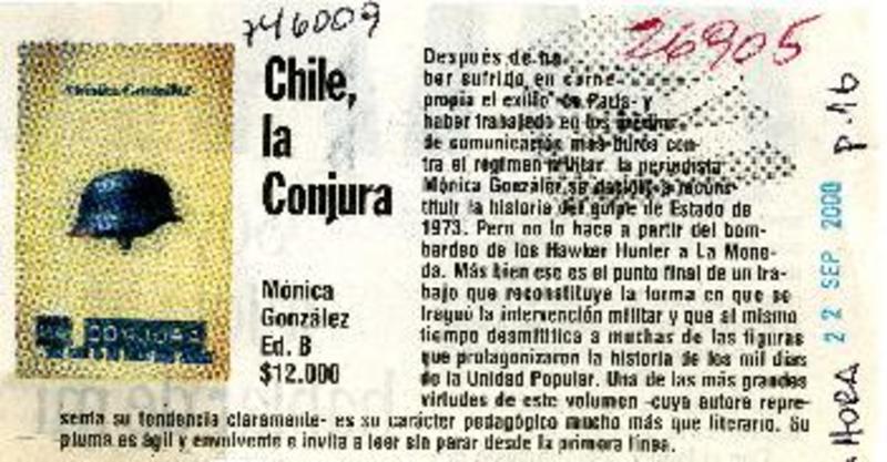 Autoras chilenas - González, Mónica - Chile, la conjura, los mil y un días del Golpe