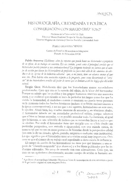 Historiografía, ciudadanía y política (entrevista) [artículo] Pablo Aravena Núñez.