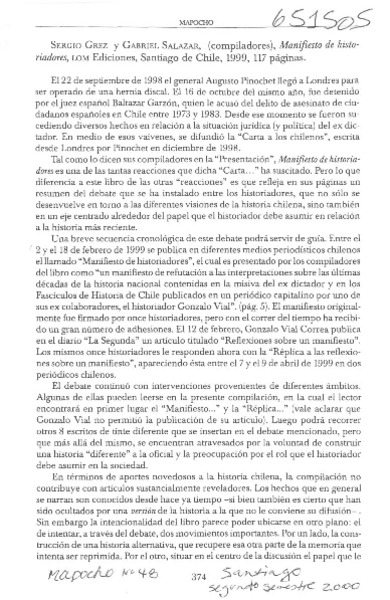 Autores chilenos - Manifiesto de historiadores - Salazar, Gabriel - Grez Toso, Sergio