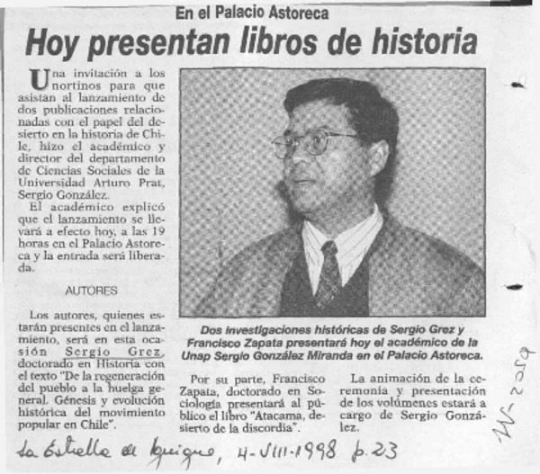 Hoy presentan libros de historia [artículo].