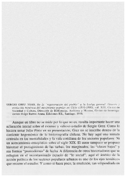 Autores chilenos - Grez Toso, Sergio - De la "regeneración del pueblo" a la huelga general