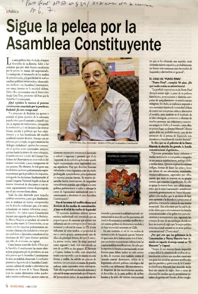 Sigue la pelea por la asamblea constituyente [entrevista] [artículo] Alejandro Lavquen.