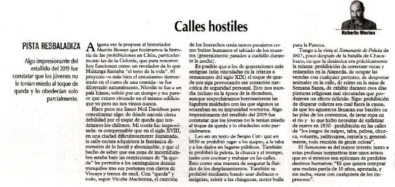 Calles hostiles [artículo] Roberto Merino.