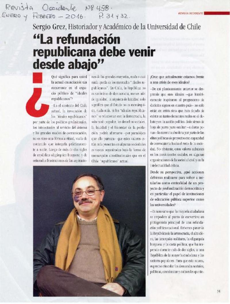 La refundación republicana debe venir desde abajo [entrevista]. [artículo] :