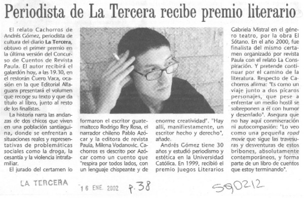 Periodista de La Tercera recibe premio literario [artículo]