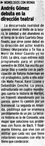 Andrés Gómez debuta en la dirección teatral. [artículo]