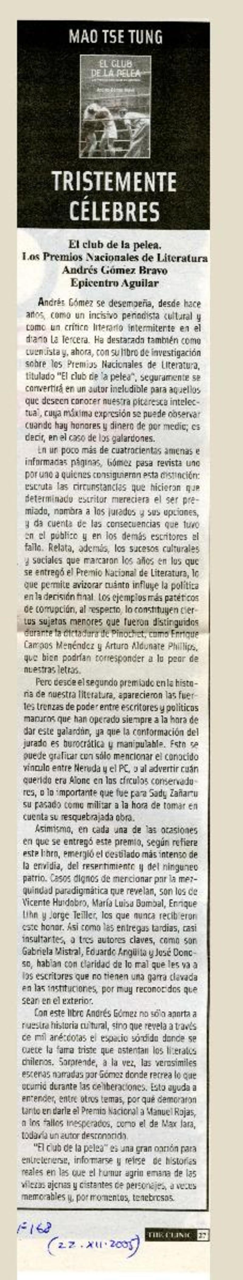 Autores chilenos - Gómez, Andrés - Club de la pelea: los premios nacionales de literatura