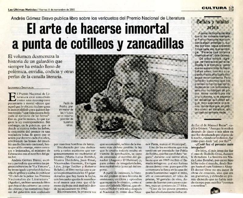El arte de hacerse inmortal a punta de cotilleos y zancadillas [artículo] Leonardo Sanhueza.