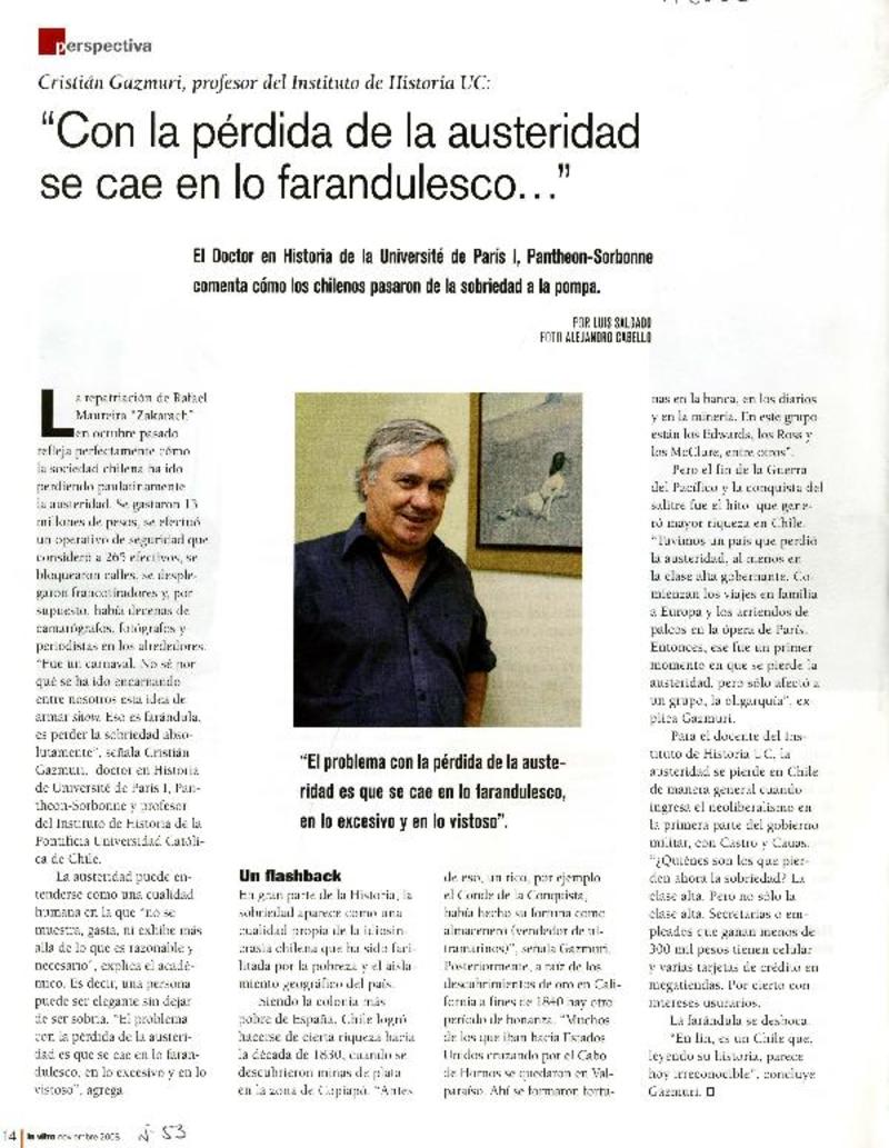 Con la pérdida de la austeridad se cae en lo farandulesco..." [artículo] Luis Salgado.