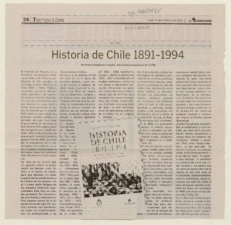 Historia de Chile 1891-1994 [artículo] Horacio Hernández Anguita.