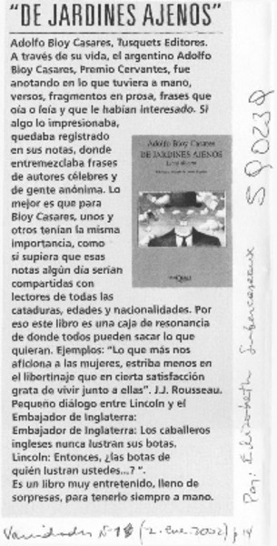 Autores argentinos - Bioy Casares, Adolfo - De jardines ajenos