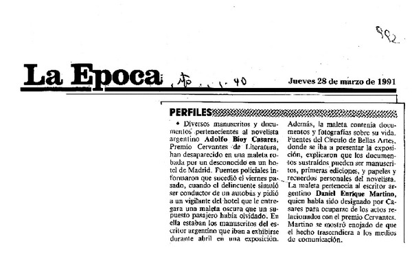 Escritor Bioy Casares ganó Premio Cervantes [artículo].