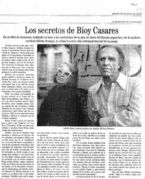 Libro revela secretos de Bioy y Ocampo. [artículo]