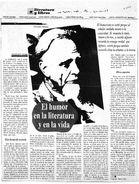 El humor en la literatura y en la vida [artículo] Adolfo Bioy Casares.