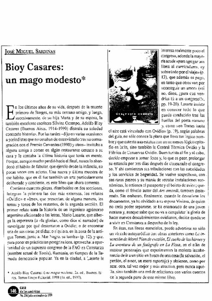 Bioy Casares: un mago modesto [artículo] José Miguel Sardiñas.