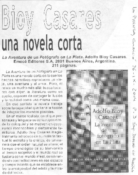 El prodigio histórico de Bioy Casares [artículo] José Ramón Ripoll.