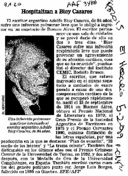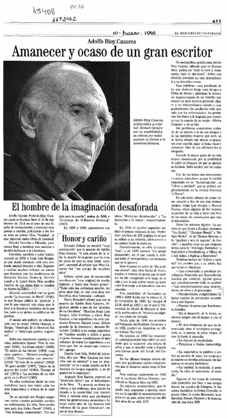 Falleció escritor Adolfo Bioy Casares [artículo].