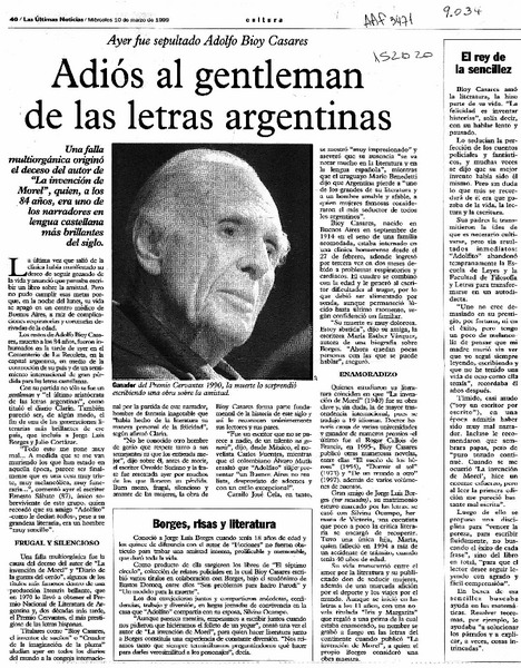 Buenos Aires llora a Bioy Casares [artículo] Francesc Relea.