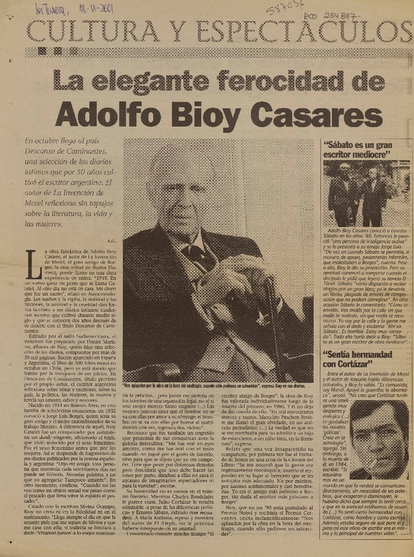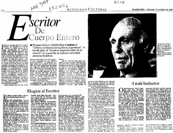 El escritor Bioy Casares [artículo] José Vargas Badilla.