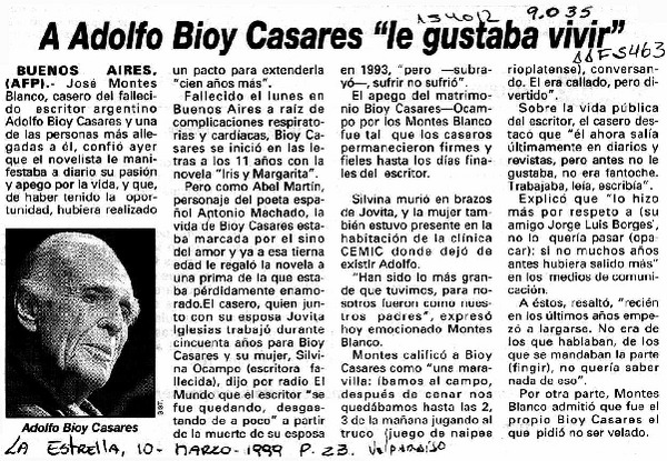 A Adolfo Bioy Casares "le gustaba vivir" [artículo].