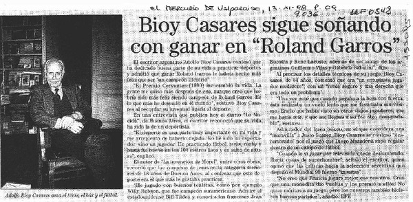 Bioy Casares sigue soñando con ganar en "Roland Garros" [artículo].