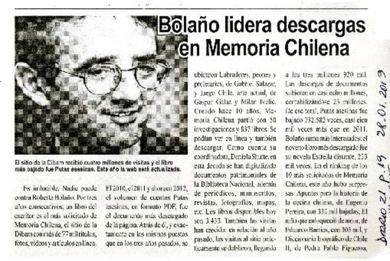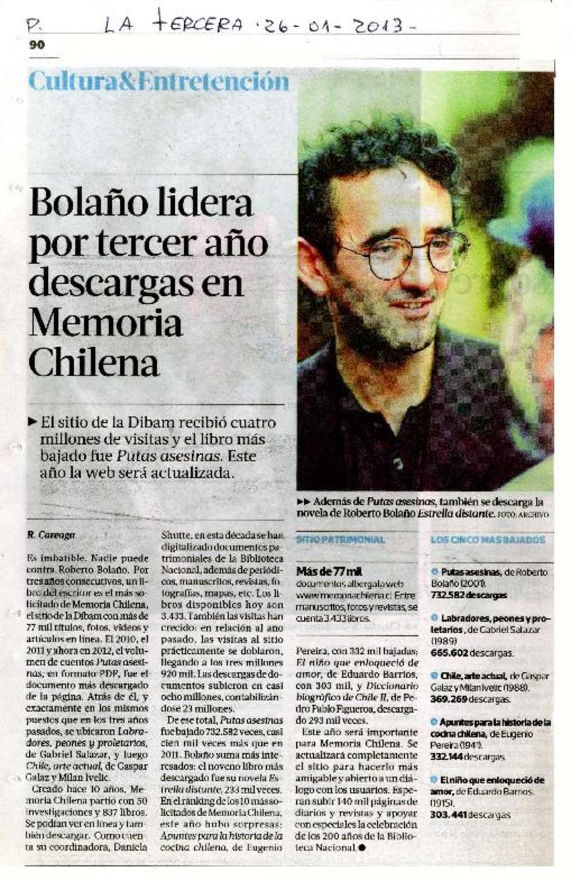 Bolaño lidera por tercer año descargas en Memoria Chilena [artículo] Roberto Careaga C.