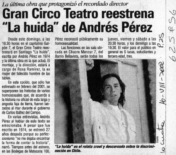 Gran Circo Teatro reestrena "La Huida" de Andrés Pérez [artículo].