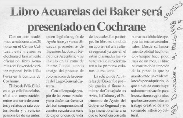 Libro Acuarelas del Baker será presentado en Cochrane [artículo]
