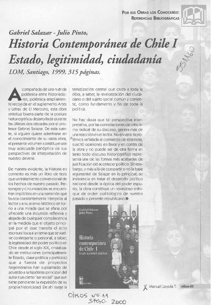 Historia contemporánea de Chile I, Estado, legitimidad, ciudadanía [artículo] Manuel Loyola T.