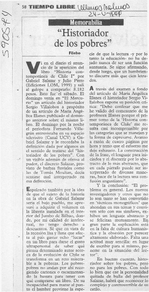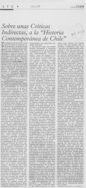 Sobre unas críticas indirectas, a la "Historia contemporánea de Chile" [artículo] Gabriel Zalazar.