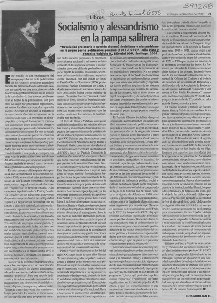 Socialismo y alessandrismo en la pampa salitrera [artículo] Luis Moulian E.