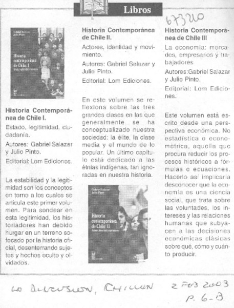 Autores chilenos - Pinto Vallejos, Julio - Salazar, Gabriel - Historia Contemporánea de Chile II - Historia Contemporánea de Chile I - Historia Contemporánea de Chile III
