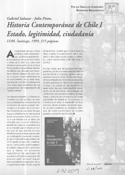 Historia contemporánea de Chile I [artículo] Manuel Loyola T.