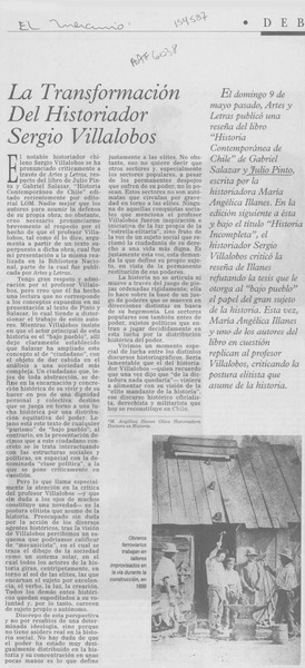 La transformación del historiador Sergio Villalobos [artículo] M. Angélica Illanes Oliva.
