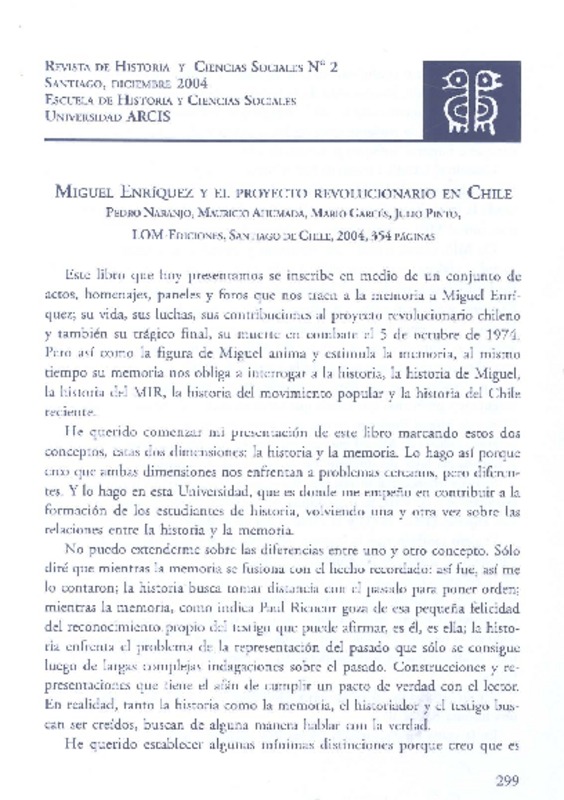 Miguel Enríquez y el proyecto revolucionario en Chile [artículo] Mario Garcés Durán.