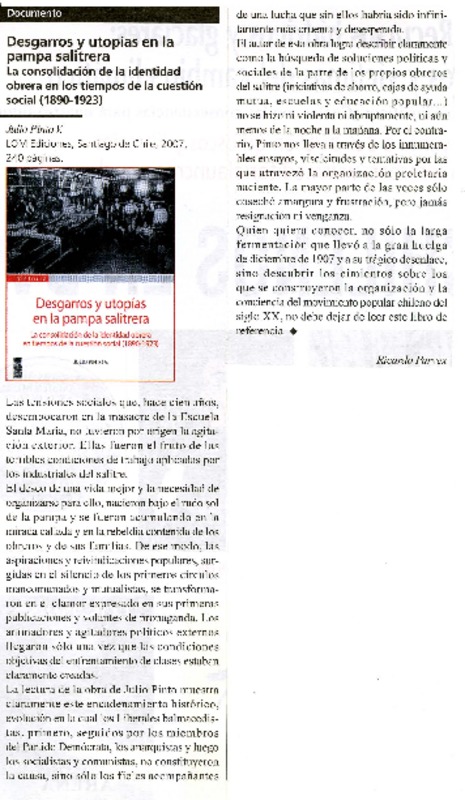 Desgarros y utopías en la pampa salitrera [artículo] Ricardo Parvex.